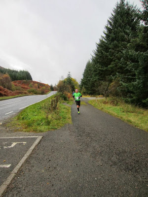 On reflection and reading split times the next two sections are as bad as they felt although from Auchtertyre through Tyndrum I was still upbeat and enjoying myself. After you pass the Green Welly Shop and climb up the hill I noticed Tyndrum Cemetery and couldn't stop myself laughing as I noticed there was only one headstone in it, either no one lives there or it is the healthiest place in the world!!! I had a short pause here and said a wee prayer for my mum who passed away last September and I just had a moment thinking to myself about all the worrying she did when all her siblings were out running marathons or shorter hoping we all finished unscathed. Well today, as I had told her on my visit to the cemetery during the week this one was for her. I cruised along nicely downhill after the A82 underpass but started to struggle a bit on the uphill before Bridge of Orchy but pulled it together and jogged down to the checkpoint for some refreshment. I forgot to check in here but Tim kindly came across and took my tab and done it for me and brought it back as I had a coffee and a bite to eat. I left here knowing the next section was the one I really had to get done and out the road as I knew I could crawl from Glencoe no problem.